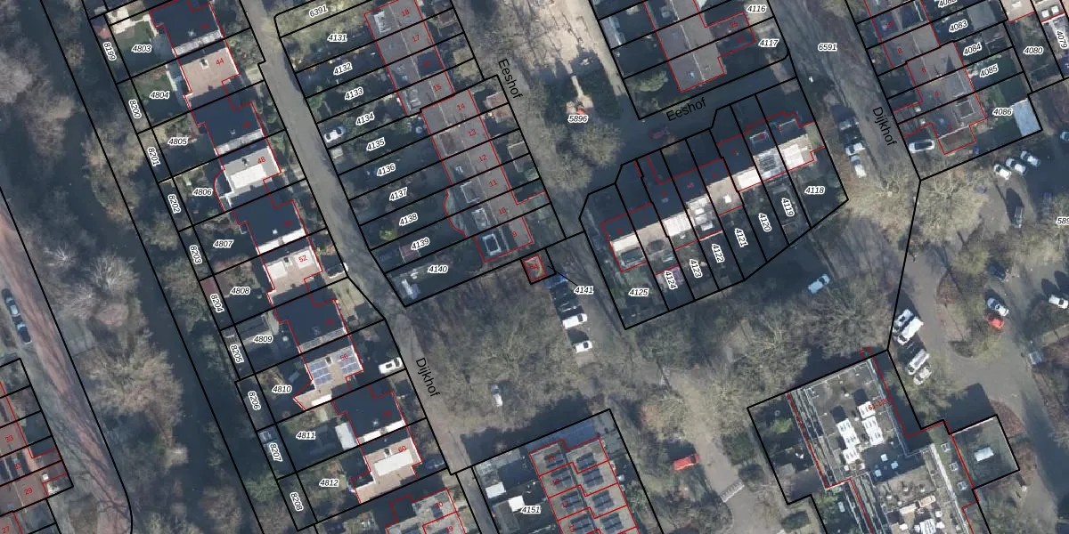 Het perceel waarop Eeshof 8-A staat heeft een oppervlakte van 26 m². Dit is een klein perceel. De perceeloppervlakte wordt geregistreerd door het Kadaster. Gedetailleerde informatie over de maten van dit perceel kunt u vinden in het rapport Kadastrale kaart met maatvoering van Eeshof 8-A.
