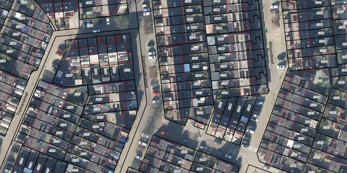 Het perceel waarop Eisenhowerdreef 25 staat heeft een oppervlakte van 147 m². Dit is een middelgroot perceel. De perceeloppervlakte wordt geregistreerd door het Kadaster. Gedetailleerde informatie over de maten van dit perceel kunt u vinden in het rapport Kadastrale kaart met maatvoering van Eisenhowerdreef 25.
