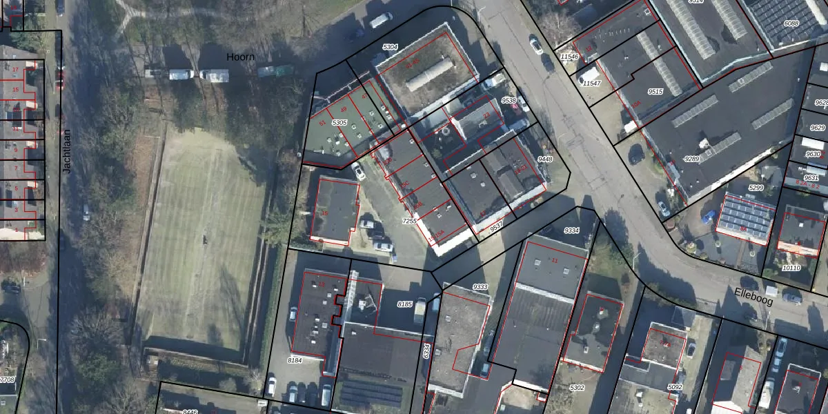 Het perceel waarop Elleboog 15-B-1 staat heeft een oppervlakte van 970 m². Dit is een groot perceel. De perceeloppervlakte wordt geregistreerd door het Kadaster. Gedetailleerde informatie over de maten van dit perceel kunt u vinden in het rapport Kadastrale kaart met maatvoering van Elleboog 15-B-1.