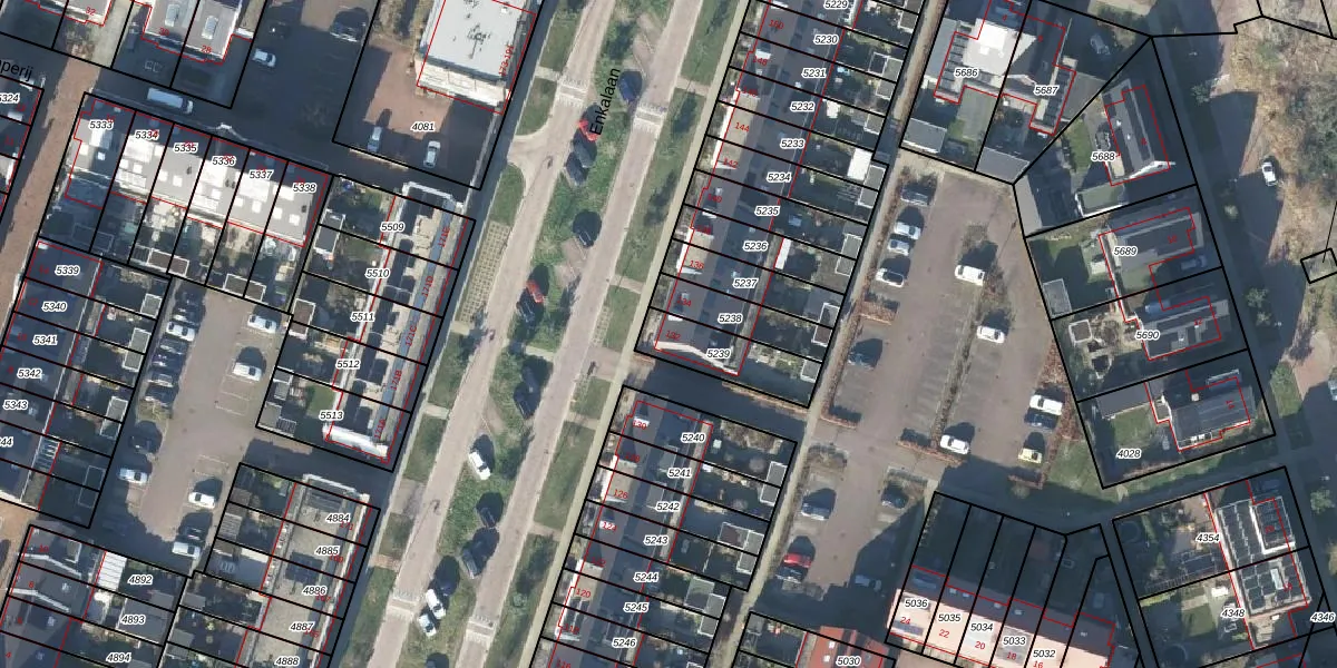 Het perceel waarop Enkalaan 132 staat heeft een oppervlakte van 189 m². Dit is een middelgroot perceel. De perceeloppervlakte wordt geregistreerd door het Kadaster. Gedetailleerde informatie over de maten van dit perceel kunt u vinden in het rapport Kadastrale kaart met maatvoering van Enkalaan 132.
