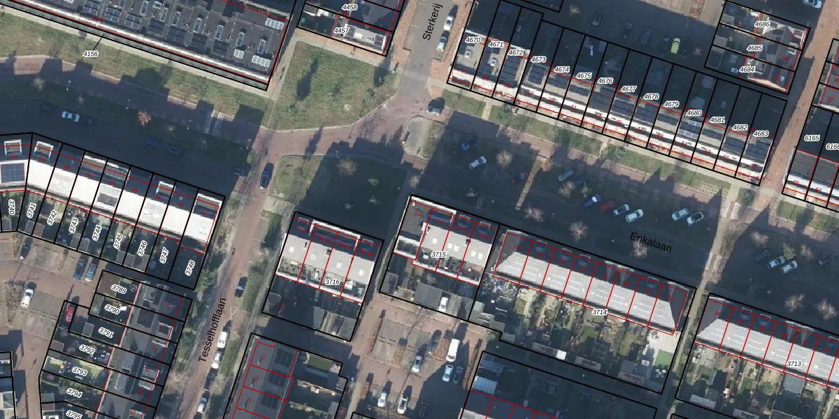 Het perceel waarop Enkalaan 2 staat heeft een oppervlakte van 544 m². Dit is een groot perceel. De perceeloppervlakte wordt geregistreerd door het Kadaster. Gedetailleerde informatie over de maten van dit perceel kunt u vinden in het rapport Kadastrale kaart met maatvoering van Enkalaan 2.