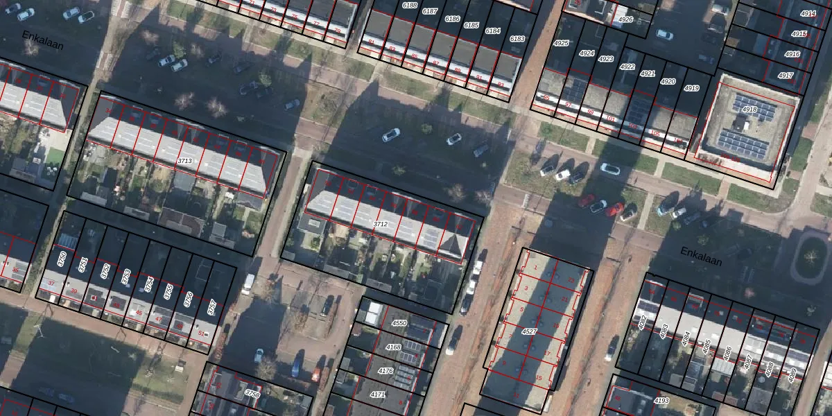 Het perceel waarop Enkalaan 58 staat heeft een oppervlakte van 1066 m². Dit is een zeer groot perceel. De perceeloppervlakte wordt geregistreerd door het Kadaster. Gedetailleerde informatie over de maten van dit perceel kunt u vinden in het rapport Kadastrale kaart met maatvoering van Enkalaan 58.