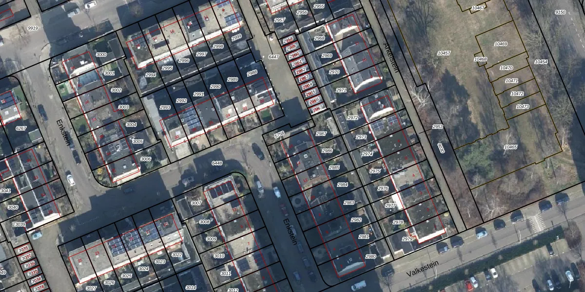 Het perceel waarop Enkstein 16 staat heeft een oppervlakte van 186 m². Dit is een middelgroot perceel. De perceeloppervlakte wordt geregistreerd door het Kadaster. Gedetailleerde informatie over de maten van dit perceel kunt u vinden in het rapport Kadastrale kaart met maatvoering van Enkstein 16.