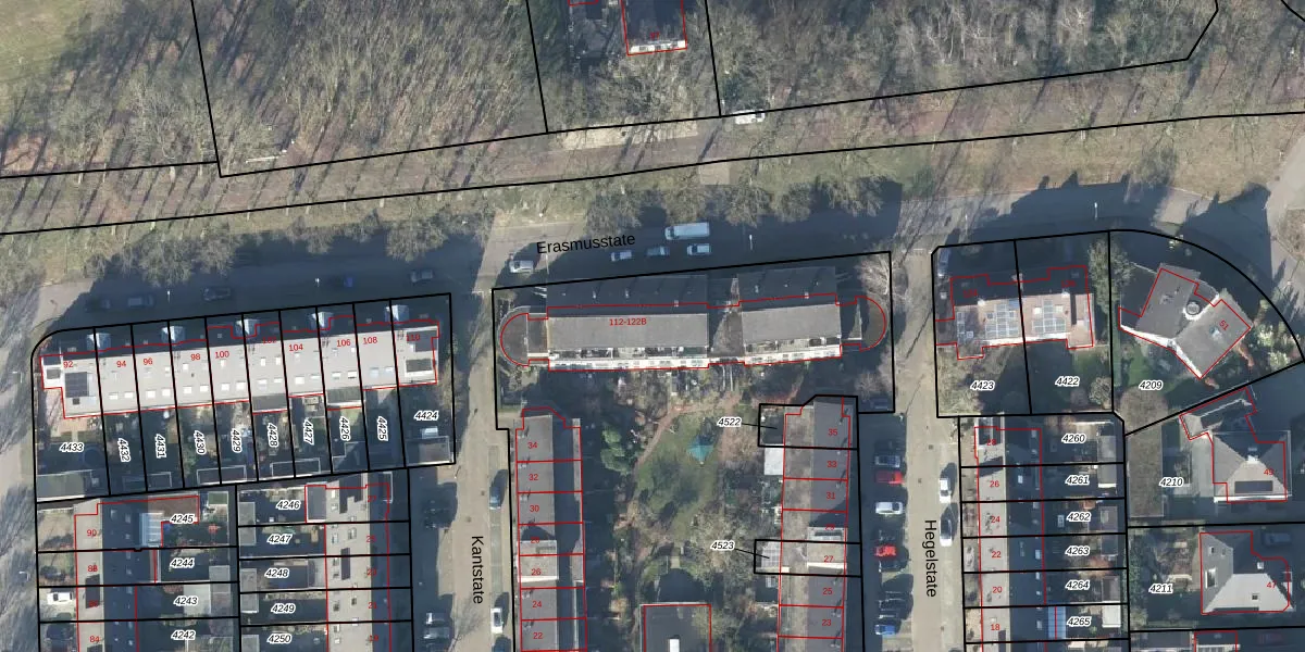 Erasmusstate 120 is gelegen op kadastraal perceel EDE01E4525. Deze kadastrale aanduiding is uniek en wordt gebruikt door het Kadaster om eigendomsrechten en andere zakelijke rechten vast te leggen. Het perceel maakt onderdeel uit van de kadastrale gemeente Ede.
