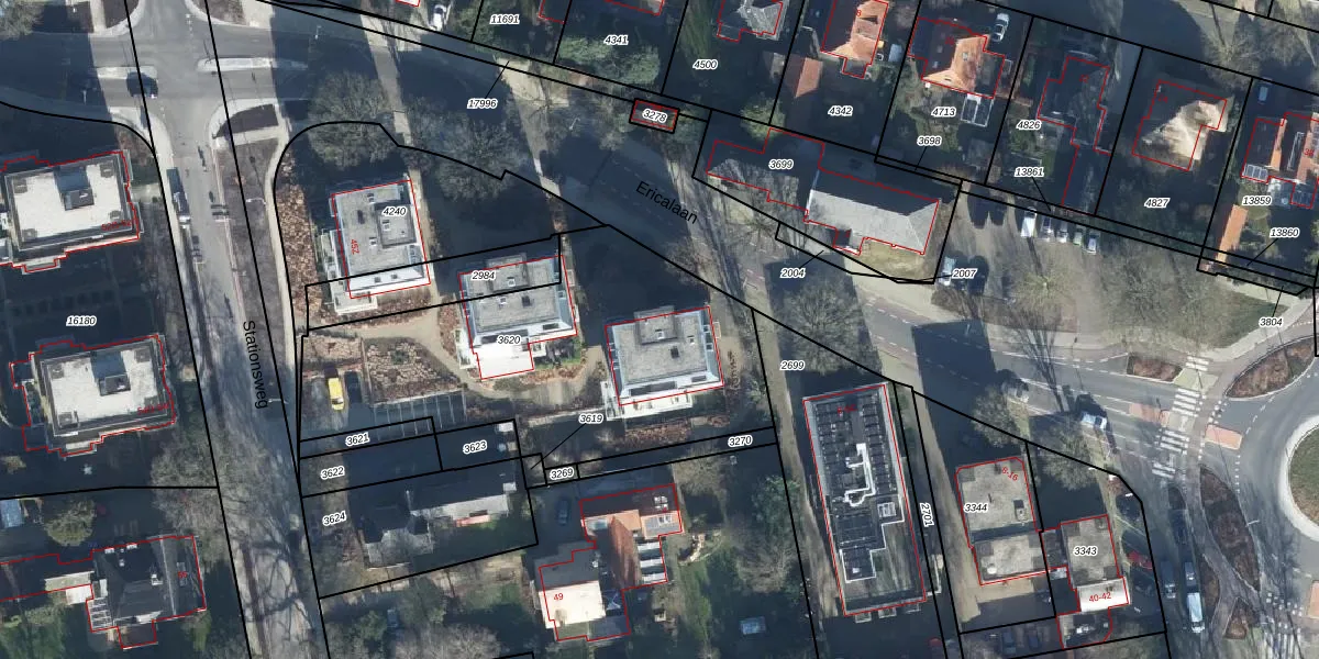 Het perceel waarop Ericalaan 2-L staat heeft een oppervlakte van 1625 m². Dit is een zeer groot perceel. De perceeloppervlakte wordt geregistreerd door het Kadaster. Gedetailleerde informatie over de maten van dit perceel kunt u vinden in het rapport Kadastrale kaart met maatvoering van Ericalaan 2-L.