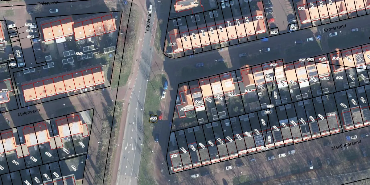 Het perceel waarop Ermerzand 2 staat heeft een oppervlakte van 253 m². Dit is een middelgroot perceel. De perceeloppervlakte wordt geregistreerd door het Kadaster. Gedetailleerde informatie over de maten van dit perceel kunt u vinden in het rapport Kadastrale kaart met maatvoering van Ermerzand 2.