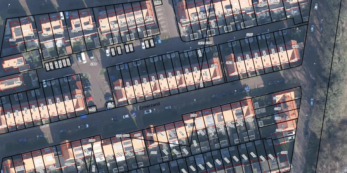 Het perceel waarop Ermerzand 33 staat heeft een oppervlakte van 119 m². Dit is een middelgroot perceel. De perceeloppervlakte wordt geregistreerd door het Kadaster. Gedetailleerde informatie over de maten van dit perceel kunt u vinden in het rapport Kadastrale kaart met maatvoering van Ermerzand 33.