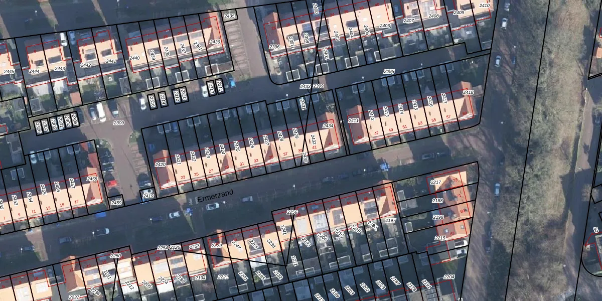 Het perceel waarop Ermerzand 39 staat heeft een oppervlakte van 96 m². Dit is een klein perceel. De perceeloppervlakte wordt geregistreerd door het Kadaster. Gedetailleerde informatie over de maten van dit perceel kunt u vinden in het rapport Kadastrale kaart met maatvoering van Ermerzand 39.