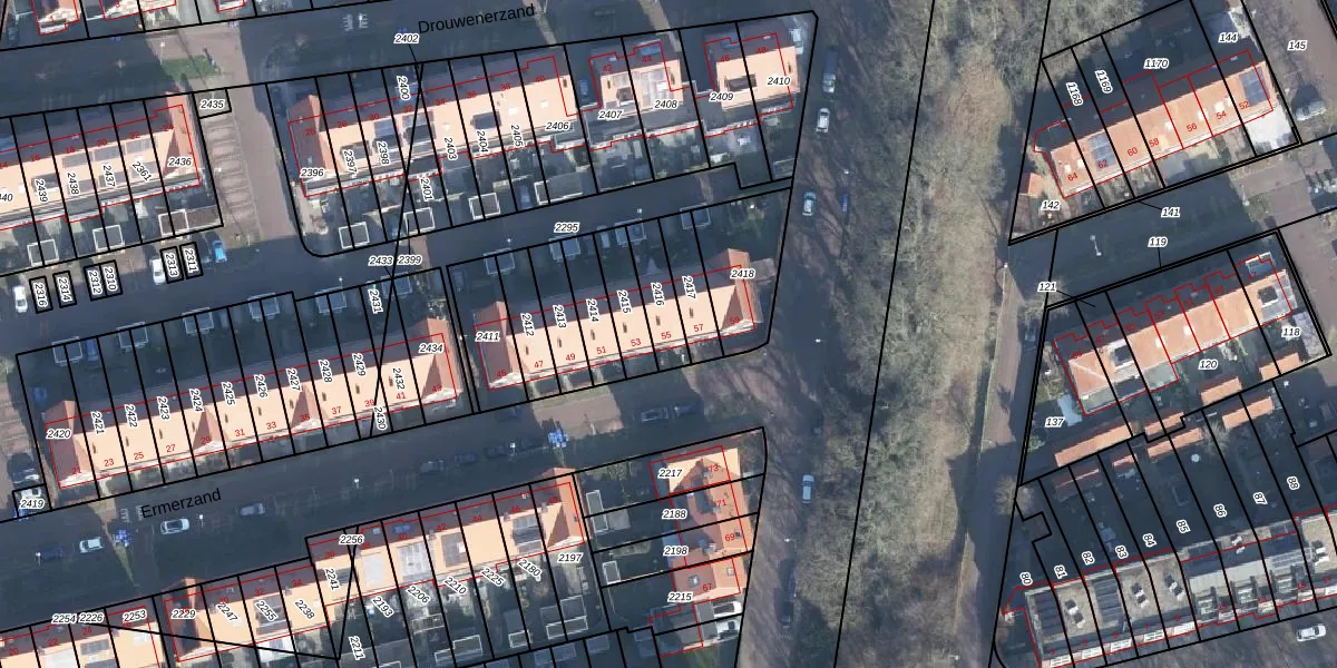 Het perceel waarop Ermerzand 55 staat heeft een oppervlakte van 112 m². Dit is een middelgroot perceel. De perceeloppervlakte wordt geregistreerd door het Kadaster. Gedetailleerde informatie over de maten van dit perceel kunt u vinden in het rapport Kadastrale kaart met maatvoering van Ermerzand 55.