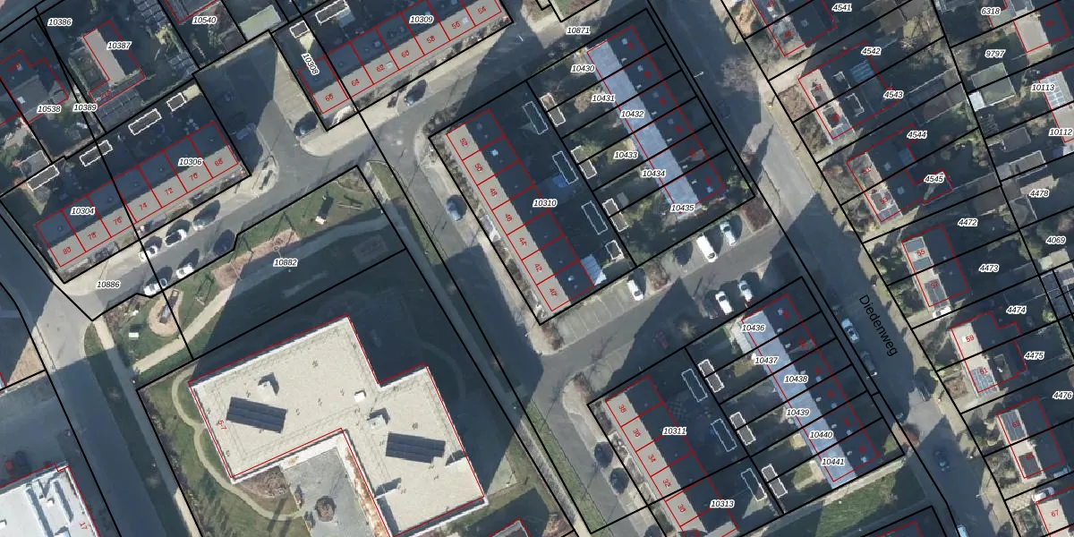 Het adres is gelegen op perceel 10310 in de sectie D en de kadastrale gemeente Ede. De kadastrale aanduiding is aldus EDE01-D-10310. Het perceel is 850 m² groot. Dat is kleiner dan de gemiddelde perceeloppervlakte in Ede, dat op 2769,59 m² ligt. Het kleinste perceel in de kadastrale gemeente is 0 m² groot. De grootste perceeloppervlakte is 2,10 km². Er zijn 7 adressen aanwezig op het perceel. De huidige grenzen van het perceel zijn digitaal in de Basisregistratie Kadaster (BRK) geregistreerd op 16-03-2017.