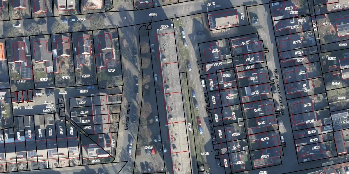 Het perceel waarop Evertsenstraat 29 staat heeft een oppervlakte van 1362 m². Dit is een zeer groot perceel. De perceeloppervlakte wordt geregistreerd door het Kadaster. Gedetailleerde informatie over de maten van dit perceel kunt u vinden in het rapport Kadastrale kaart met maatvoering van Evertsenstraat 29.