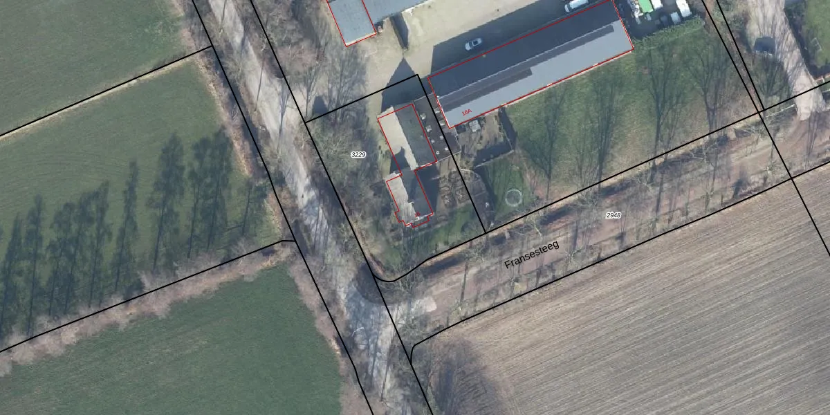 Fransesteeg 16 is gelegen op kadastraal perceel EDE01H3229. Deze kadastrale aanduiding is uniek en wordt gebruikt door het Kadaster om eigendomsrechten en andere zakelijke rechten vast te leggen. Het perceel maakt onderdeel uit van de kadastrale gemeente Ede.