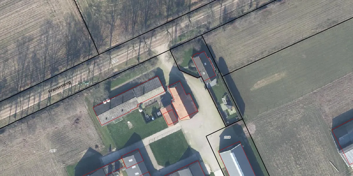 Het perceel waarop Fransesteeg 3 staat heeft een oppervlakte van 2,3 ha. Dit is een zeer groot perceel. De perceeloppervlakte wordt geregistreerd door het Kadaster. Gedetailleerde informatie over de maten van dit perceel kunt u vinden in het rapport Kadastrale kaart met maatvoering van Fransesteeg 3.