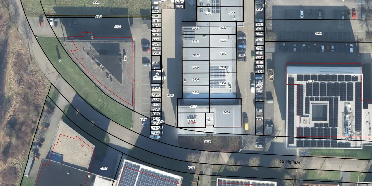 Galileïlaan 33-B is gelegen op kadastraal perceel EDE01E5505. Deze kadastrale aanduiding is uniek en wordt gebruikt door het Kadaster om eigendomsrechten en andere zakelijke rechten vast te leggen. Het perceel maakt onderdeel uit van de kadastrale gemeente Ede.