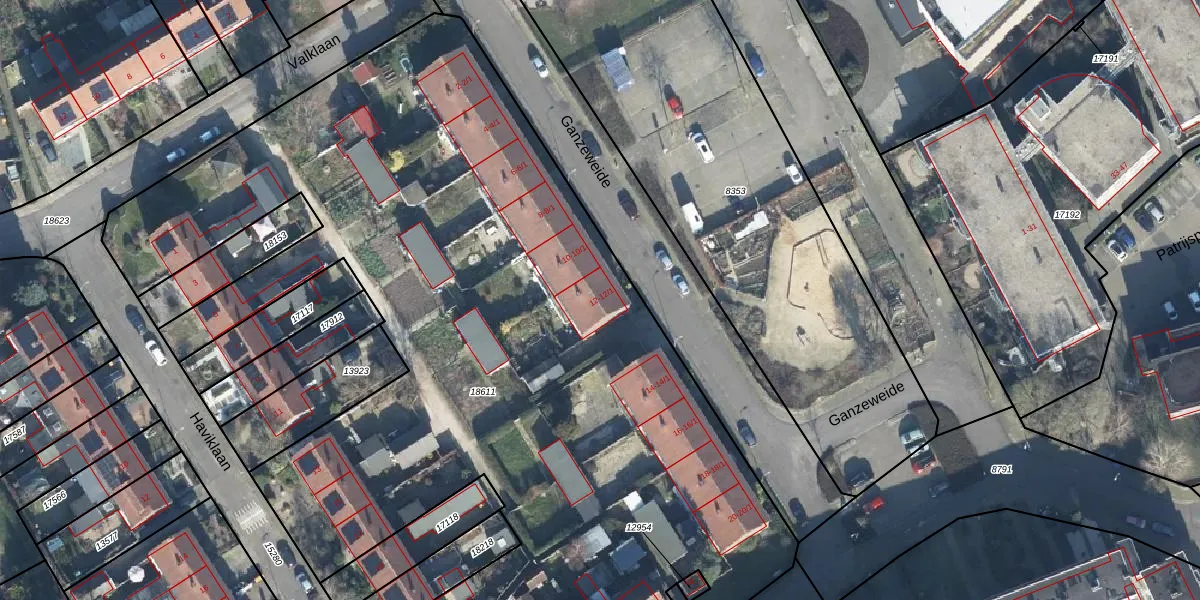 Ganzeweide 12 is gelegen op kadastraal perceel EDE01K18611. Deze kadastrale aanduiding is uniek en wordt gebruikt door het Kadaster om eigendomsrechten en andere zakelijke rechten vast te leggen. Het perceel maakt onderdeel uit van de kadastrale gemeente Ede.