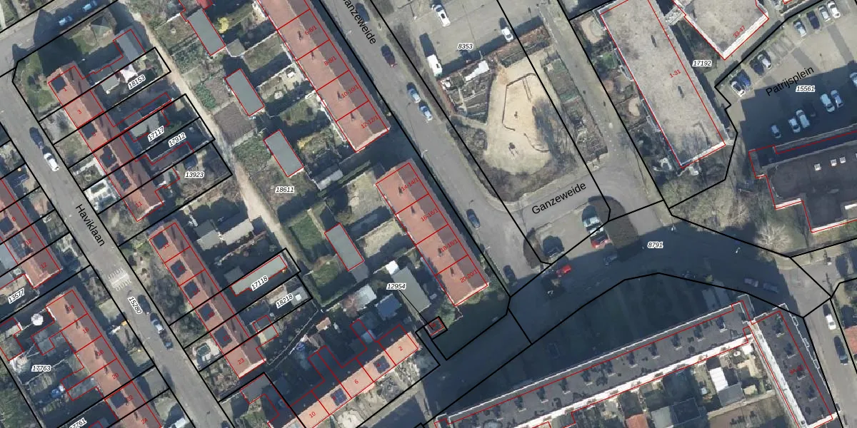 Ganzeweide 16 is gelegen op kadastraal perceel EDE01K18611. Deze kadastrale aanduiding is uniek en wordt gebruikt door het Kadaster om eigendomsrechten en andere zakelijke rechten vast te leggen. Het perceel maakt onderdeel uit van de kadastrale gemeente Ede.