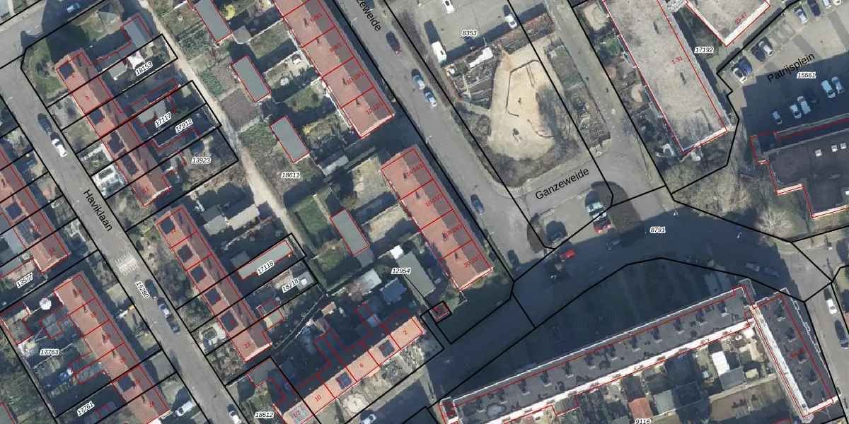 Ganzeweide 16-1 is gelegen op kadastraal perceel EDE01K18611. Deze kadastrale aanduiding is uniek en wordt gebruikt door het Kadaster om eigendomsrechten en andere zakelijke rechten vast te leggen. Het perceel maakt onderdeel uit van de kadastrale gemeente Ede.