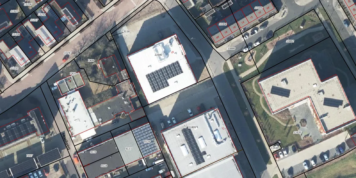 Gebruik de zoekbalk of klik op een perceel voor informatie over de adressen binnen dit perceel.