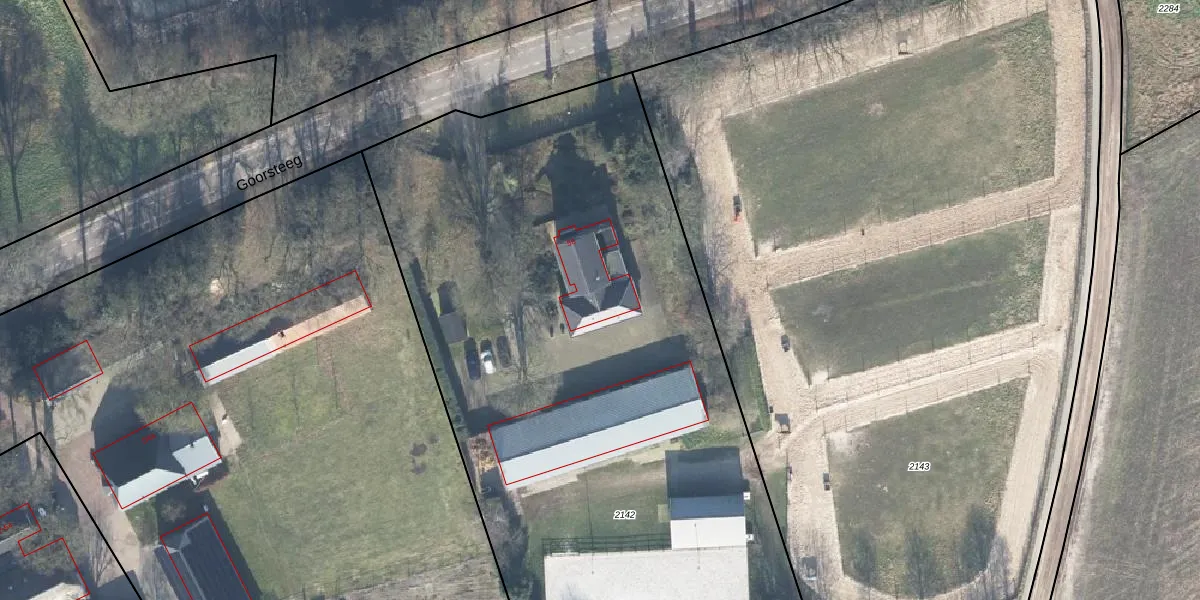 Het perceel waarop Goorsteeg 56 staat heeft een oppervlakte van 4500 m². Dit is een zeer groot perceel. De perceeloppervlakte wordt geregistreerd door het Kadaster. Gedetailleerde informatie over de maten van dit perceel kunt u vinden in het rapport Kadastrale kaart met maatvoering van Goorsteeg 56.