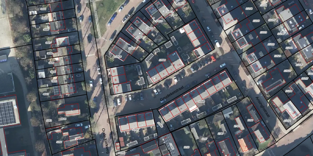 Het perceel waarop Goudeketstraat 1 staat heeft een oppervlakte van 1395 m². Dit is een zeer groot perceel. De perceeloppervlakte wordt geregistreerd door het Kadaster. Gedetailleerde informatie over de maten van dit perceel kunt u vinden in het rapport Kadastrale kaart met maatvoering van Goudeketstraat 1.