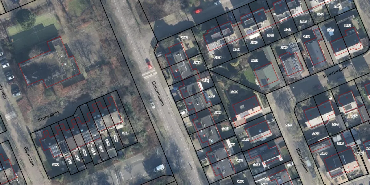 Gebruik de zoekbalk of klik op een perceel voor informatie over de adressen binnen dit perceel.
