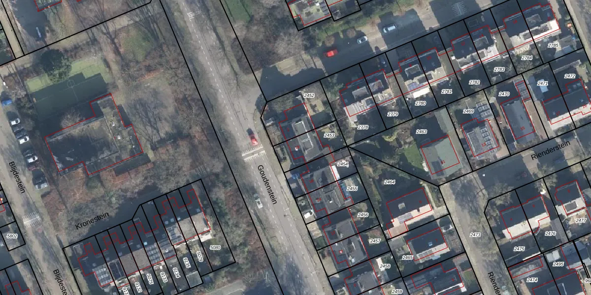 Gebruik de zoekbalk of klik op een perceel voor informatie over de adressen binnen dit perceel.