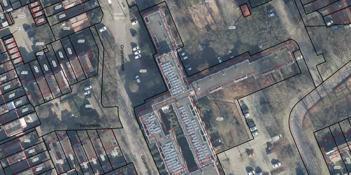 Het perceel waarop Groevenbeek 4 staat heeft een oppervlakte van 4721 m². Dit is een zeer groot perceel. De perceeloppervlakte wordt geregistreerd door het Kadaster. Gedetailleerde informatie over de maten van dit perceel kunt u vinden in het rapport Kadastrale kaart met maatvoering van Groevenbeek 4.