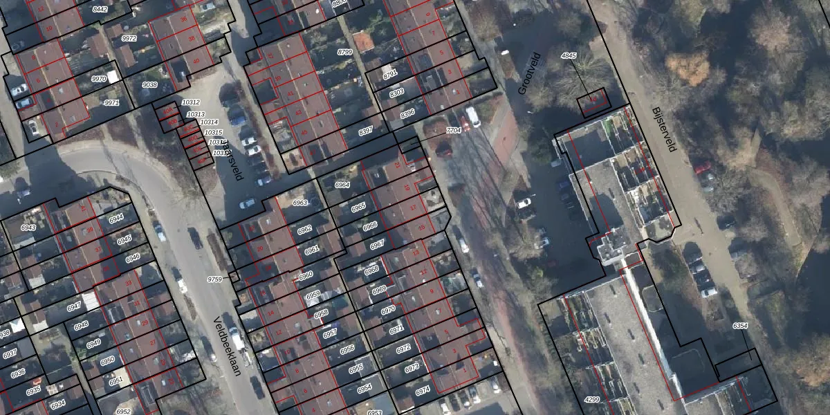 Gebruik de zoekbalk of klik op een perceel voor informatie over de adressen binnen dit perceel.