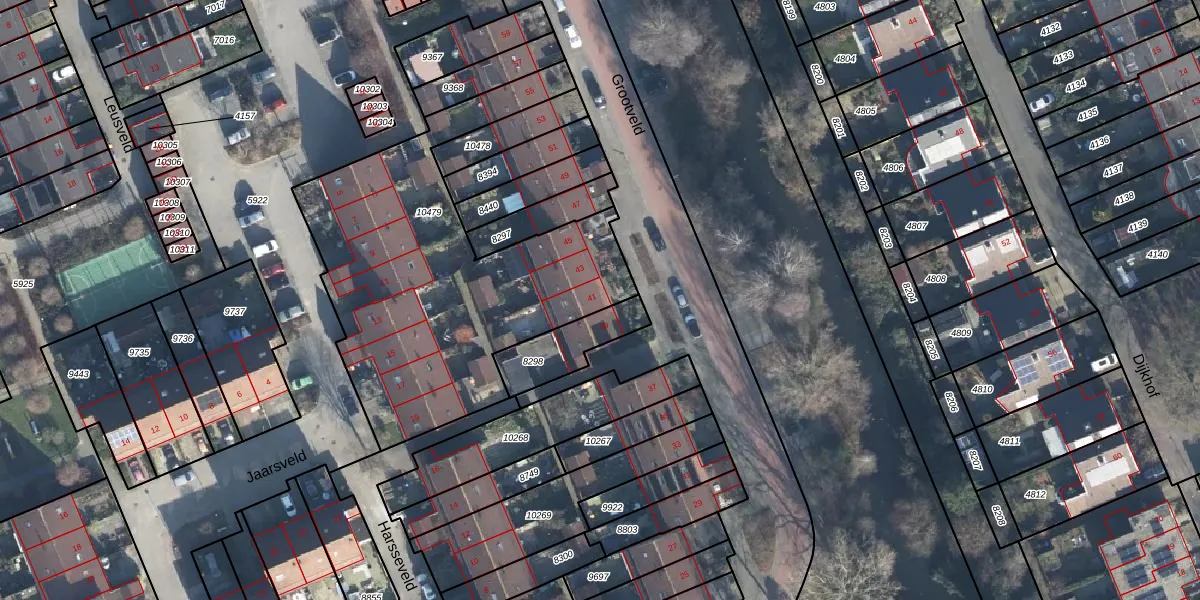Het perceel waarop Grootveld 41 staat heeft een oppervlakte van 1637 m². Dit is een zeer groot perceel. De perceeloppervlakte wordt geregistreerd door het Kadaster. Gedetailleerde informatie over de maten van dit perceel kunt u vinden in het rapport Kadastrale kaart met maatvoering van Grootveld 41.