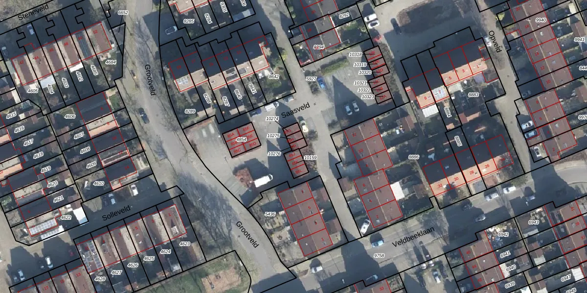 Gebruik de zoekbalk of klik op een perceel voor informatie over de adressen binnen dit perceel.