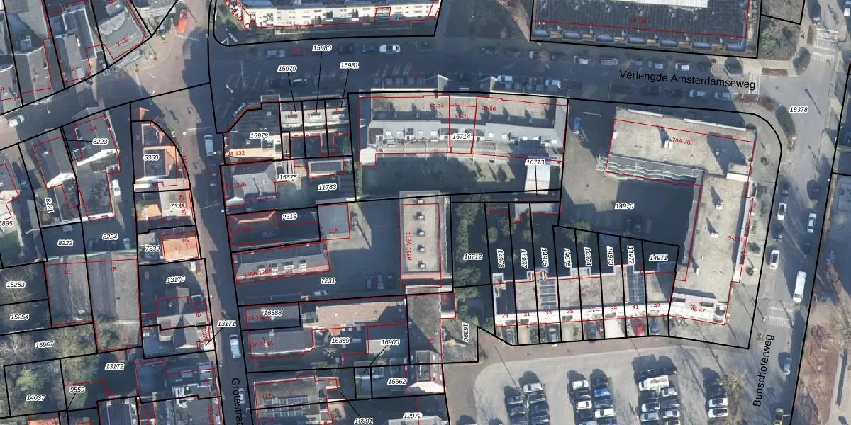 Het perceel waarop Grotestraat 118-P staat heeft een oppervlakte van 975 m². Dit is een groot perceel. De perceeloppervlakte wordt geregistreerd door het Kadaster. Gedetailleerde informatie over de maten van dit perceel kunt u vinden in het rapport Kadastrale kaart met maatvoering van Grotestraat 118-P.