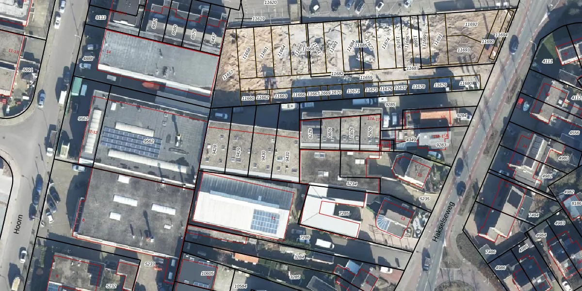 Gebruik de zoekbalk of klik op een perceel voor informatie over de adressen binnen dit perceel.