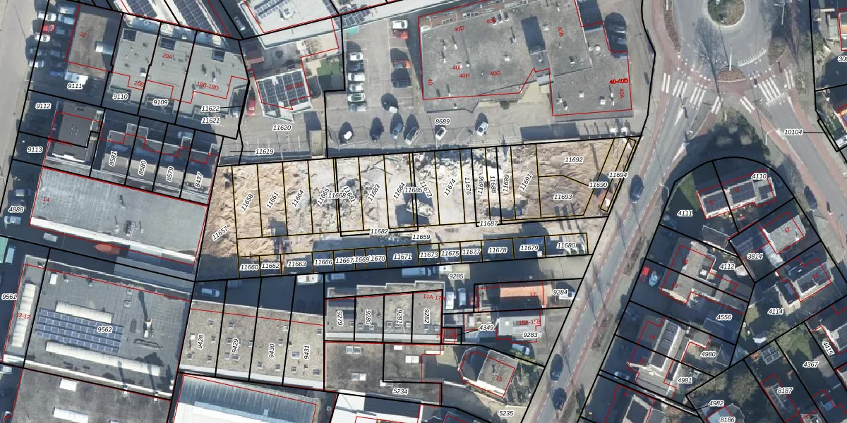 Gebruik de zoekbalk of klik op een perceel voor informatie over de adressen binnen dit perceel.