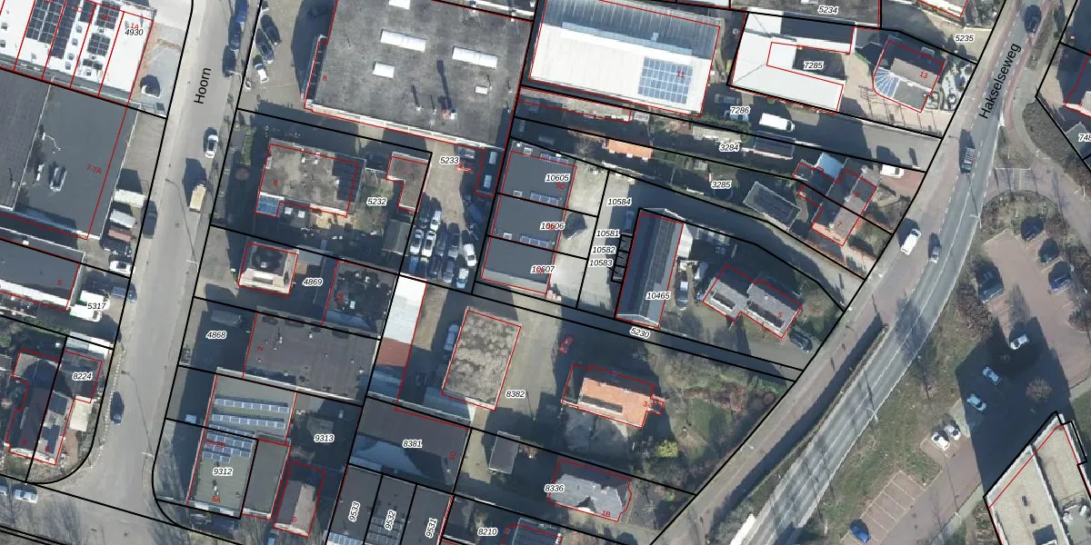 Gebruik de zoekbalk of klik op een perceel voor informatie over de adressen binnen dit perceel.