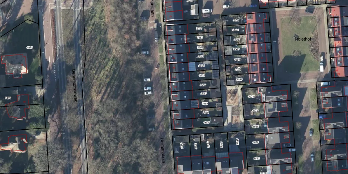 Het perceel waarop Heimanslaan 49 staat heeft een oppervlakte van 161 m². Dit is een middelgroot perceel. De perceeloppervlakte wordt geregistreerd door het Kadaster. Gedetailleerde informatie over de maten van dit perceel kunt u vinden in het rapport Kadastrale kaart met maatvoering van Heimanslaan 49.