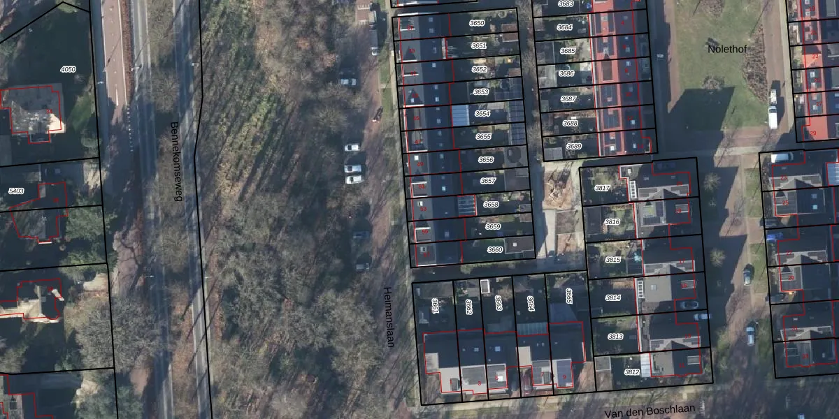 Gebruik de zoekbalk of klik op een perceel voor informatie over de adressen binnen dit perceel.