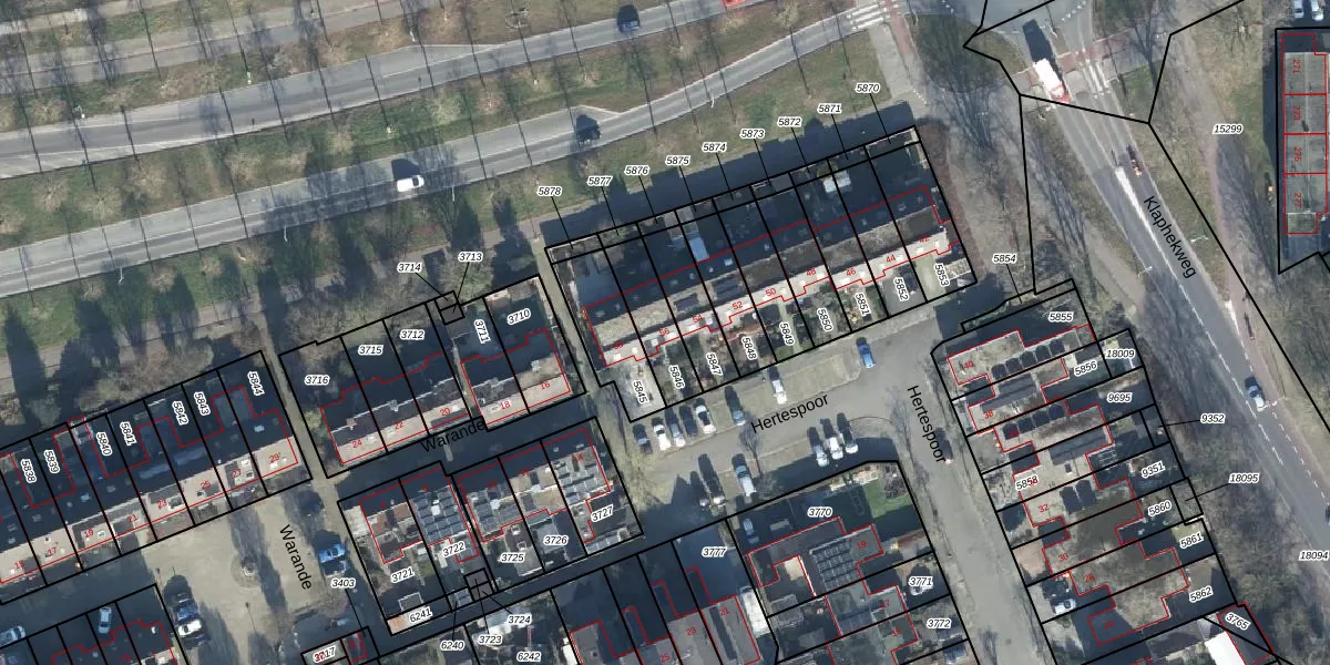 Gebruik de zoekbalk of klik op een perceel voor informatie over de adressen binnen dit perceel.