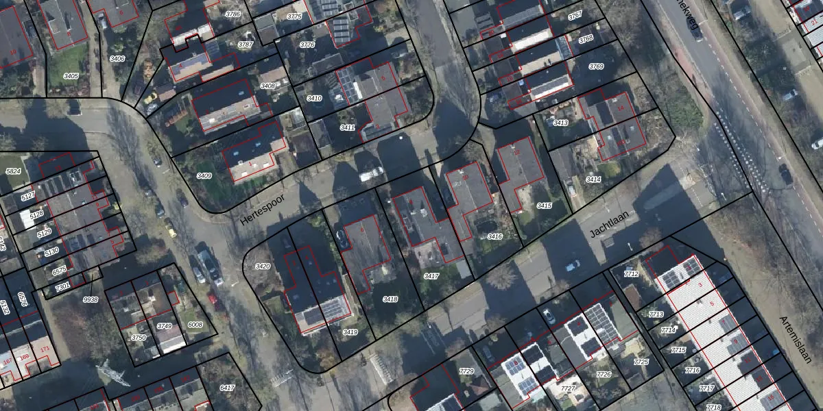 Gebruik de zoekbalk of klik op een perceel voor informatie over de adressen binnen dit perceel.