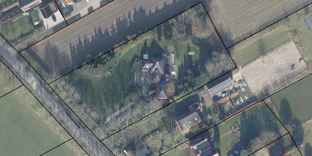 Het perceel waarop Hessenweg 76 staat heeft een oppervlakte van 5092 m². Dit is een zeer groot perceel. De perceeloppervlakte wordt geregistreerd door het Kadaster. Gedetailleerde informatie over de maten van dit perceel kunt u vinden in het rapport Kadastrale kaart met maatvoering van Hessenweg 76.