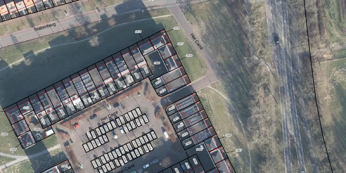 Het Carré 1 is gelegen op kadastraal perceel EDE01N1474. Deze kadastrale aanduiding is uniek en wordt gebruikt door het Kadaster om eigendomsrechten en andere zakelijke rechten vast te leggen. Het perceel maakt onderdeel uit van de kadastrale gemeente Ede.
