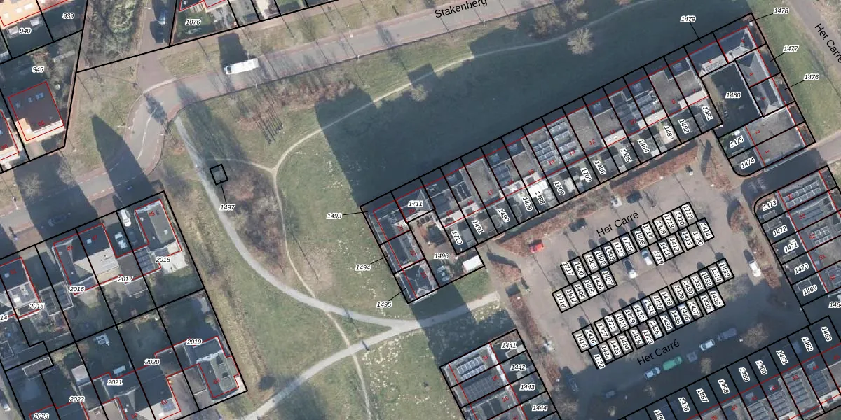 Het perceel waarop Het Carré 20 staat heeft een oppervlakte van 63 m². Dit is een klein perceel. De perceeloppervlakte wordt geregistreerd door het Kadaster. Gedetailleerde informatie over de maten van dit perceel kunt u vinden in het rapport Kadastrale kaart met maatvoering van Het Carré 20.