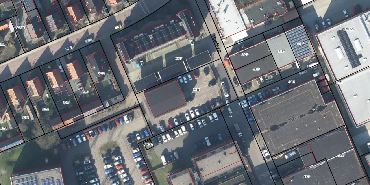 Hoefweg 155 is gelegen op kadastraal perceel EDE01D7438. Deze kadastrale aanduiding is uniek en wordt gebruikt door het Kadaster om eigendomsrechten en andere zakelijke rechten vast te leggen. Het perceel maakt onderdeel uit van de kadastrale gemeente Ede.