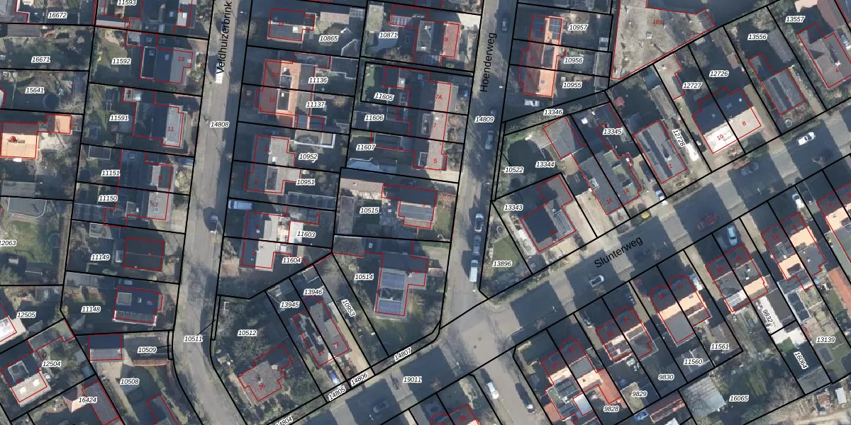 Gebruik de zoekbalk of klik op een perceel voor informatie over de adressen binnen dit perceel.