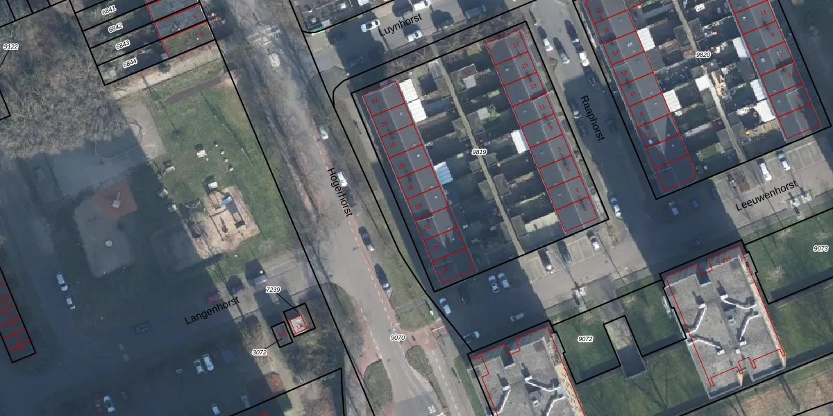 Het perceel waarop Hogerhorst 2-D staat heeft een oppervlakte van 2345 m². Dit is een zeer groot perceel. De perceeloppervlakte wordt geregistreerd door het Kadaster. Gedetailleerde informatie over de maten van dit perceel kunt u vinden in het rapport Kadastrale kaart met maatvoering van Hogerhorst 2-D.