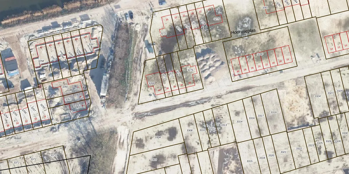 Hoornseplas 36 is gelegen op kadastraal perceel EDE01N3272. Deze kadastrale aanduiding is uniek en wordt gebruikt door het Kadaster om eigendomsrechten en andere zakelijke rechten vast te leggen. Het perceel maakt onderdeel uit van de kadastrale gemeente Ede.