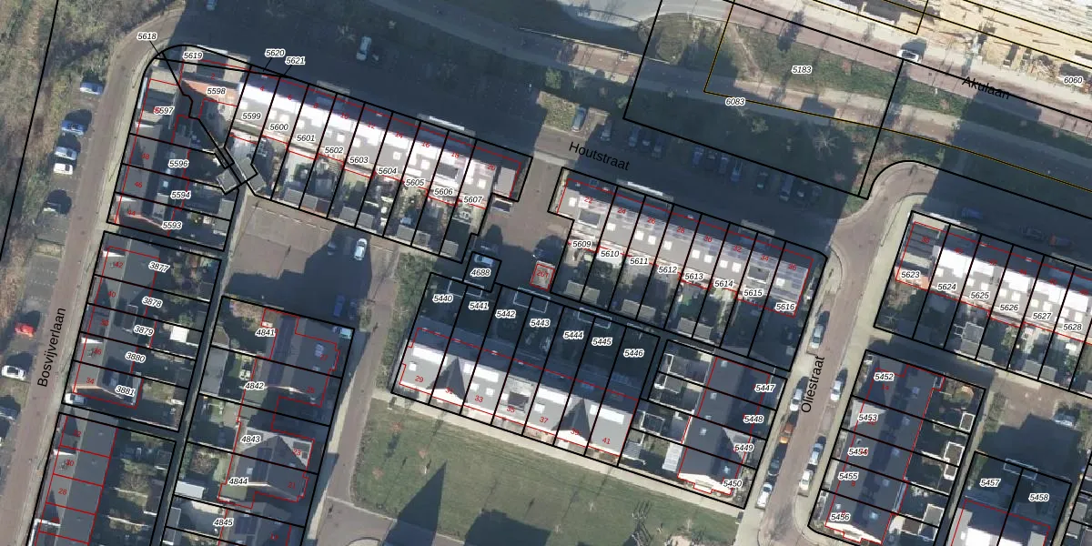 Het perceel waarop Houtstraat 20-T staat heeft een oppervlakte van 16,7 ha. Dit is een zeer groot perceel. De perceeloppervlakte wordt geregistreerd door het Kadaster. Gedetailleerde informatie over de maten van dit perceel kunt u vinden in het rapport Kadastrale kaart met maatvoering van Houtstraat 20-T.