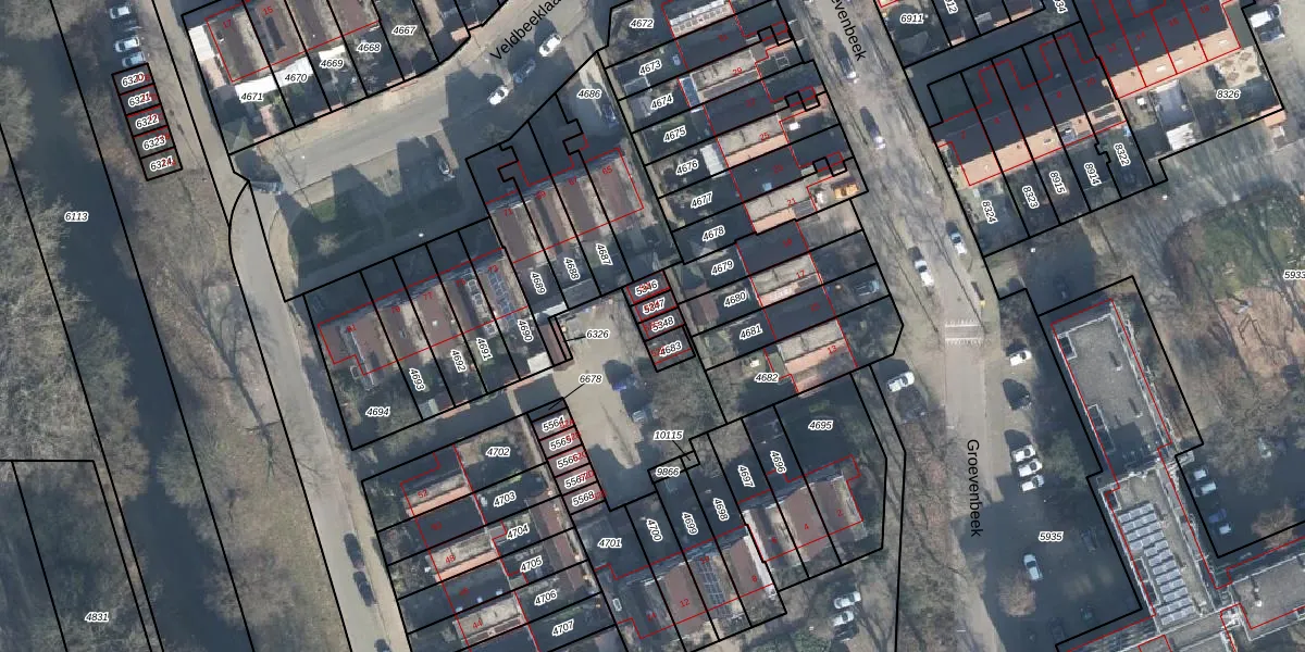 Gebruik de zoekbalk of klik op een perceel voor informatie over de adressen binnen dit perceel.
