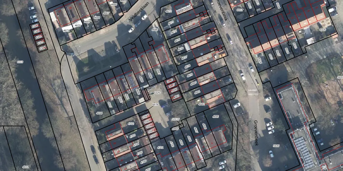 Gebruik de zoekbalk of klik op een perceel voor informatie over de adressen binnen dit perceel.