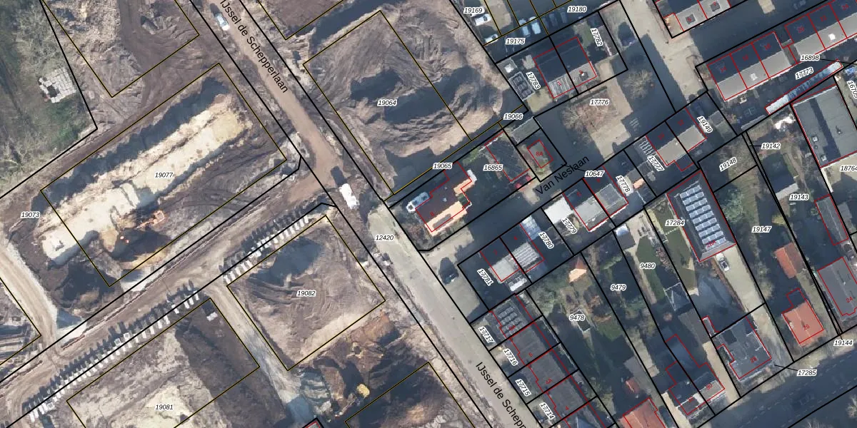 Gebruik de zoekbalk of klik op een perceel voor informatie over de adressen binnen dit perceel.