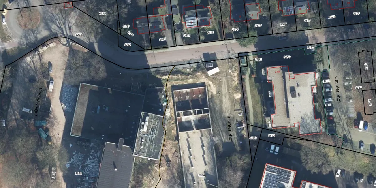 Het perceel waarop Infanteriehof 2-A staat heeft een oppervlakte van 5262 m². Dit is een zeer groot perceel. De perceeloppervlakte wordt geregistreerd door het Kadaster. Gedetailleerde informatie over de maten van dit perceel kunt u vinden in het rapport Kadastrale kaart met maatvoering van Infanteriehof 2-A.